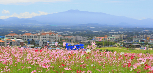 | 30일 오후 제주시 조천읍 함덕 서우봉에 코스모스가 활짝 피어 가을 정취를 물씬 풍기고 있다. |