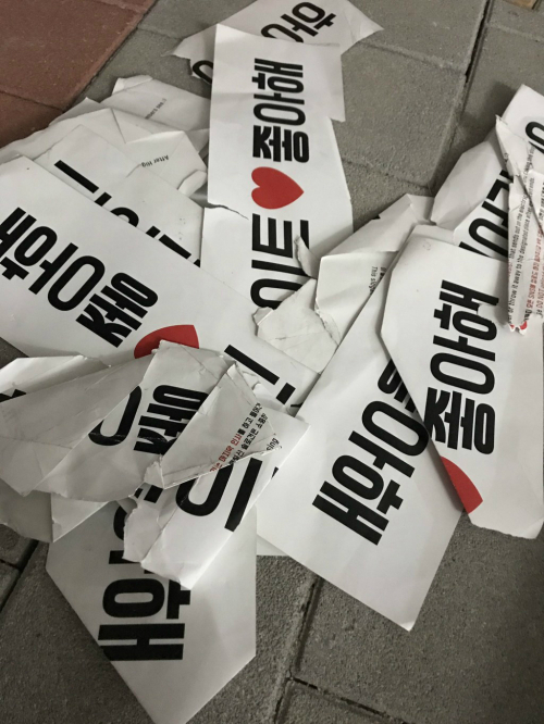 | 지난 2일 하이라이트 콘서트에서 일부 관객이 이벤트 슬로건을 손상했다. 출처=온라인커뮤니티 |