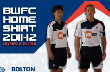 | EPL 팀 볼턴FC의 유니폼에 새겨진 도박광고. 세계일보 자료사진. |