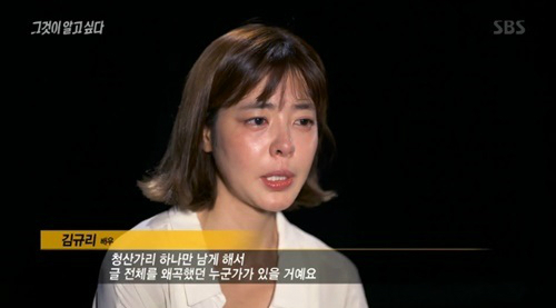 배우 김규리(사진, 개명 전 김민선)가 23일 방송된 SBS '그것이 알고 싶다'에 출연해 눈물을 보였다.