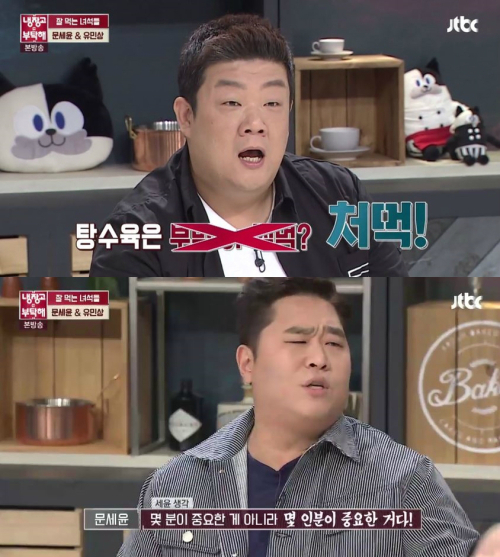 12일 방송된 JTBC 예능 프로그램 '냉장고를 부탁해'에서는 문세윤과 동료 유민상이 음식과 관련한 어록을 차례대로 읊었다.