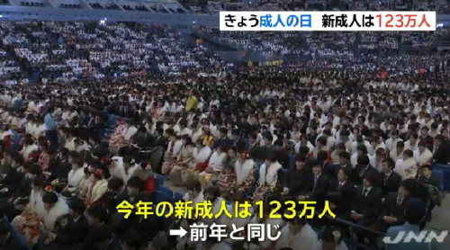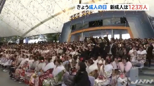 | 일본에서 올해 성인이 된 인구는 총 123만명인 것으로 조사됐다. 사진= JNN 방송화면 캡처 |