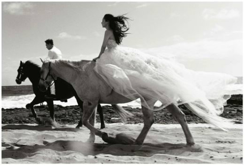 공개된 웨딩화보에는 해변가에서 말과 함께 촬영한 두 사람의 아름다운 모습이 담겼다.