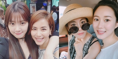 | 견미리(왼쪽 사진 오른쪽)가 공개한 이유비(왼쪽 사진 왼쪽), 이다인(오른쪽 사진 오른쪽)과의 즐거운 모습. |