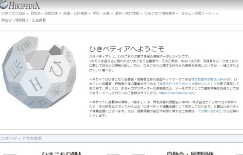 | 히키코모리 관련 정보 사이트 ‘히키피디아’ |