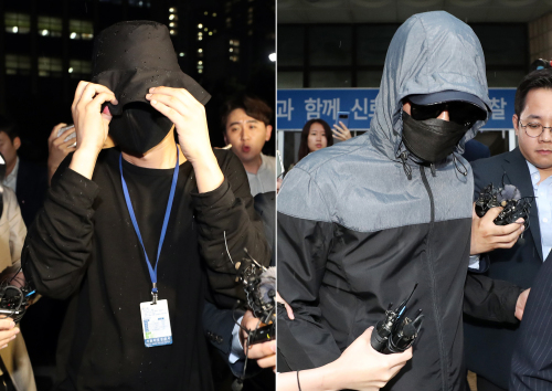 | 유튜버 양예원씨의 노출사진을 파일공유사이트에 재유포한 혐의를 받고 있는 강모(가운데)씨가 지난 26일 서울서부지법에서 구속 전 피의자 심문(영장실질심사)를 받기 위해 마포경찰서를 나서고 있다. 뉴스1 |