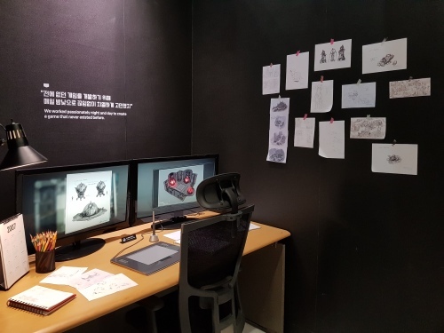 | 2018지스타에서 개발자의 데스크를 표현한 크래프톤의 부스. 김건호 기자 |