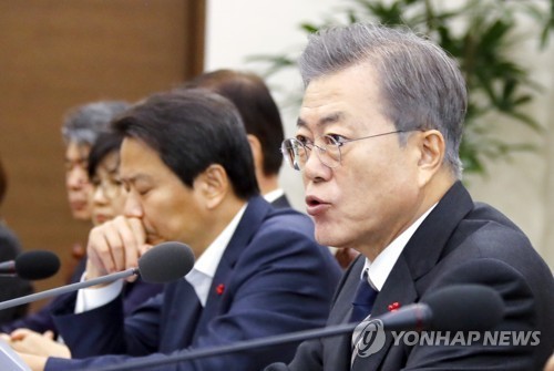| 문재인 대통령이 17일 오후 청와대 여민관에서 열린 수석ㆍ보좌관회의를 주재하고 있다. |