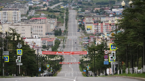 | 마가단 시 도로와 건물. |