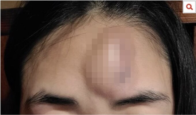 공유한 사진을 보면 A씨의 이마는 남성의 폭행으로 커다란 혹이 부풀어 올라왔다.