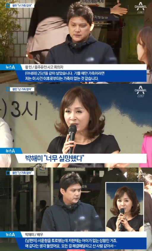 배우 박해미(위에서 두 번째 사진)가 뮤지컬 연출가인 남편 황민과 이혼한 가운데 황민이 음주운전 사고 이후 취재진에게 했던 발언이 회자되고 있다.