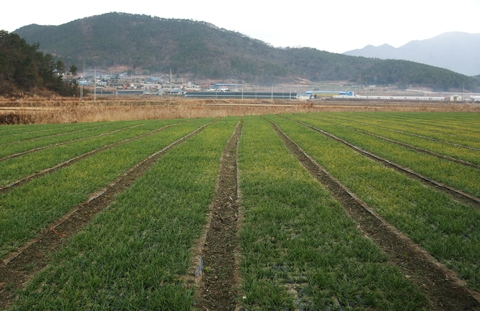 | ◇장흥군 안양면 율산마을의 파릇한 겨울 들녘. |