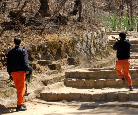 지난 20일 서울 종로구 삼청동 삼청공원에 멧돼지 한 마리가 출현했다. 관내 소방관들은 현장으로 긴급 출동, 주택가를 향해 돌진하던 멧돼지를 마취총으로 쏘아 잡았다. 다행히 일찍 발견돼 인명피해는 없었지만 노약자에게 달려들었다면 큰 사고가 날 뻔했다.