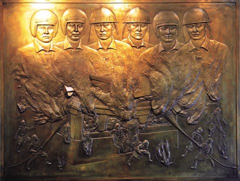 | ◇서울 은평소방서에 설치된 2001년 홍제동 화재사고 순직 소방관 6명의 추모 동판. |