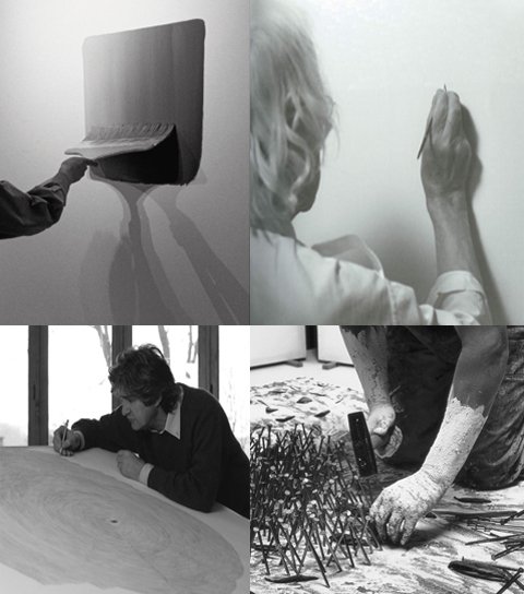 | ◇긴 여운을 남기는 음악과 시 같은 작업을 하는 작가들의 작업 모습. 이우환, 로만 오팔카, 귄터 위커. 주세페 페노네, (왼쪽 위 부터 시계방향) |