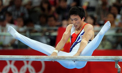 | 고난도 연기 한국 남자 체조의 유원철이 19일 베이징 올림픽체육관에서 열린 평행봉 결선에서 고난도 연기를 펼치고 있다. 베이징=연합뉴스 |
