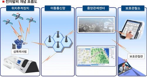 ◆전자발찌=성범죄자의 발목에 채워져 위치를 관제센터에서 확인할 수 있도록 한 장치로 부착장치(발찌), 휴대용 추적장치, 가택감독장치로 구성됐다. 상습 성범죄자는 무게 150g 이하의 부착장치를 발목에 착용하고 추적장치를 몸에 지니고 다녀야 한다. 부착장치와 추적장치의 거리가 5m 이상 벌어지면 관제센터에 경고 신호가 통보된다. 집안에서는 추적장치를 가택감독장치에 부착하며, 미리 입력된 집안 내 최대 이동 거리를 벗어나거나 추적장치 없이 집 밖으로 나갈 때에도 관제센터에 곧바로 통보된다.
