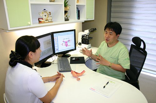 | ◇서울 송파구 마리아플러스병원 윤지성 진료부장이 불임 관련 상담을 하고 있다. 마리아플러스병원 제공 |