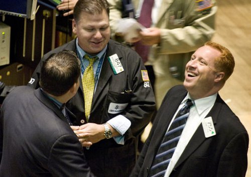 | ◇미국 정부가 금융위기 타개를 위한 구제 조치를 마련하겠다는 방침이 알려진 19일 뉴욕 증권거래소의 주식 중개인들이 환하게 웃고 있다. 미 정부는 20일 향후 2년간 7000억달러의 공적 자금을 투입하는 내용의 구제금융안을 발표했다. 뉴욕=AP연합뉴스 |