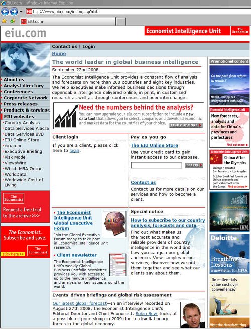 | 이코노미스트 인텔리전스 유닛은 영국의 '이코노미스트(경제주간지)' 계열 연구소이다. |