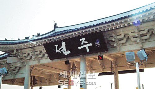 | ◇여태명 교수가 쓴 호남고속도로 전주톨게이트 현판 글씨에는 전주 고장의 넉넉한 인심과 풍요가 묻어나는 듯하다. |
