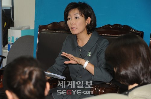| ◇한나라당 나경원 제6정조위원장이 3일 여의도 당사에서 가진 기자간담회에서 사이버모욕죄와 인터넷 실명제 도입에 대한 입장을 밝히고 있다. 이범석 기자 |