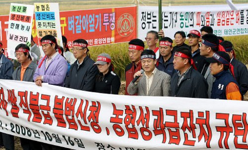 500여명의 농민들은 최근 불거진 쌀 직불 보전금 부당 지급에 항의하며 공직자 허수아비를 불태웠다. 이어 부근 태안읍 장산리로 옮겨 논 1650㎡를 트랙터로 갈아엎은 뒤 쓰러진 벼에 불을 질렀다.