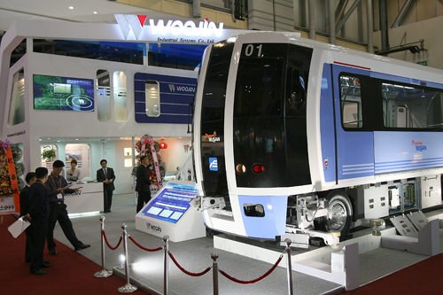 우진산전은 부산지하철 3호선 2단계 반송선 구간에 투입되는 국내 최초의 무인 고무바퀴 경전철 차량을 전시한다. 현재 시범운행 중인 이 차량은 2010년 하반기 본격 운행될 예정이다.