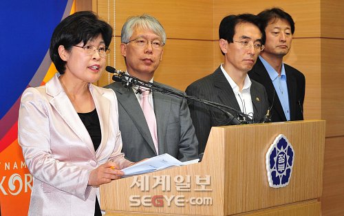 | ◇10일 서울 세종로 정부종합청사 브리핑실에서 전재희 보건복지부 장관(왼쪽)이 첨단의료복합단지 선정 지역을 발표하고 있다. 이종덕 기자 |