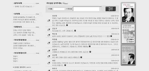 | ◇김대중 전 대통령의 영결식이 끝났지만 김 전 대통령 추모 공식홈페이지에는 24일도 추모글이 계속 이어졌다. |
