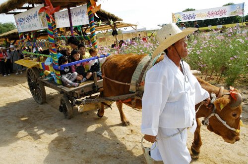 | ◇지난해 열린 지평선축제에서 관광객들이 소 달구지를 타고 들녘을 둘러보고 있다. 세계일보 자료사진 |