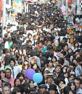 | ◇일본인들이 여러 표정으로 일본 도쿄 번화가를 가득 메우고 있다. 섬나라 일본은 다양한 인종과 여러 문화로 이뤄졌다. 실제 역사는 물론 신화도 복잡한 곳이 일본이다. 세계일보 자료사진 |