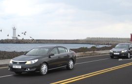 지난 8일 오후 제주 해안도로와 인근 국도는 르노 삼성 신차 ‘뉴SM5’의 물결이었다. 오는 18일 공식 출시를 앞둔 르노 삼성의 베스트셀링 중형 세단 뉴SM5가 자동차 담당 기자들에게 평가받는 시승회가 진행된 것.