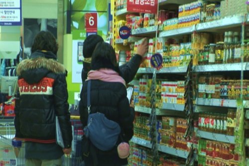 5층짜리 진열대 중 3, 4번째 칸에 진열된 상품이 압도적으로 많았고 상품 종류와 상관없이 반값(50%)이나 ‘원플러스원’(1+1) 제품은 반드시 포함돼 있었던 것.
