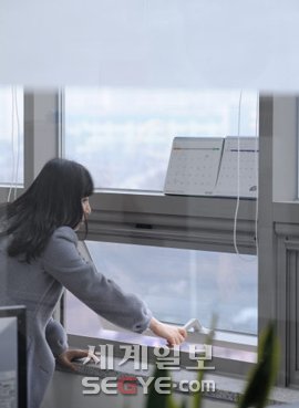 | ◇한 여성이 사무실 환기를 위해 창문을 열고 있다. 실내 활동이 많은 겨울철 두통과 피로감을 유발하는 빌딩증후군으로부터 탈출하려면 2∼3시간마다 환기하는 것이 중요하다. 가능하면 맞바람이 치도록 양쪽의 창문을 함께 열어두면 더욱 좋다. 허정호 기자 |