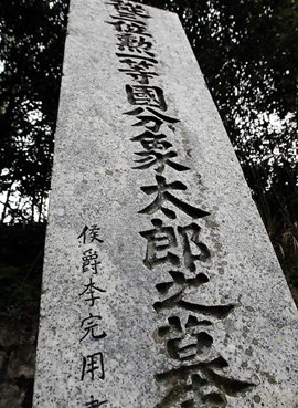 | ◇일본 쓰시마시 고쿠분지 뒤 공동묘지 최정상에 있는 고쿠분쇼타로의 묘비 왼쪽 아래에는 한자로 ‘후작 이완용 서’라고 쓰여 있다. 연합뉴스 |