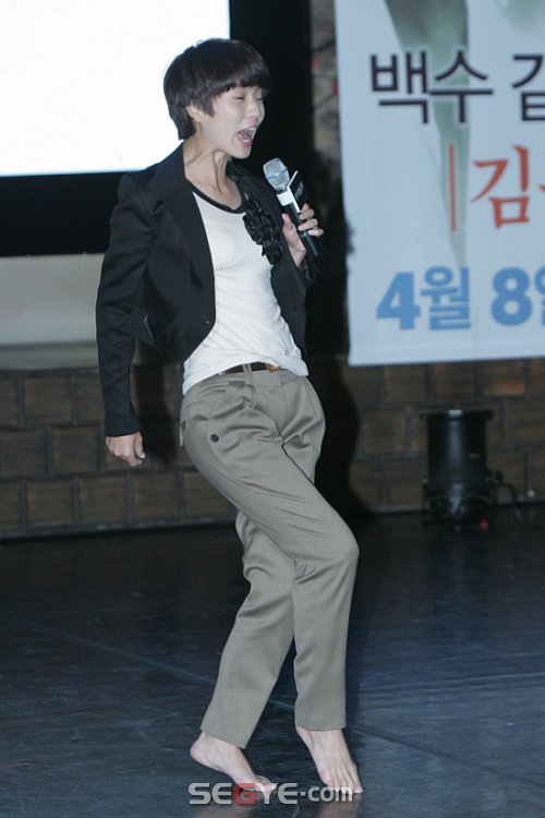 [세계닷컴] 10일 오전 서울 이화여고 100주년 기념관에서 열린 영화 '반가운 살인자' 제작보고회에서 사회를 맡은 개그우먼 안영미가 코믹댄스를 선보이고 있다.