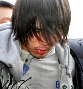 | ◇10일 오후 공개수사 12일 만에 경찰에 붙잡힌 부산 여중생 이유리(13)양 납치살해 피의자 김길태(33)가 고개를 숙인 채 수사본부가 차려진 부산 사상경찰서로 압송되고 있다. 부산=연합뉴스 |