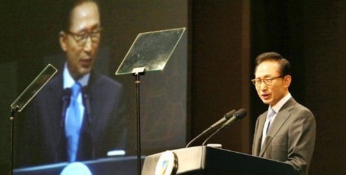 | 뿔테 안경을 착용한 이명박 대통령 |