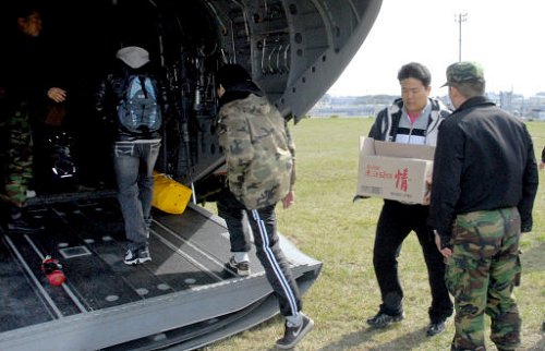 | 백령도로 향하는 가족대표 경기 평택 해군 2함대사령부에 있는 천안함 실종자 가족 대표들이 함체 인양 작업을 지켜보기 위해 14일 백령도로 향하는 헬기에 오르고 있다. 해군 제공 |
