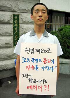 강씨는 2004년 학내 종교 자유를 주장하며 1인 시위를 벌이다 제적당한 뒤 학교의 종교행사 강요로 헌법에 보장된 종교ㆍ양심의 자유와 평등권 등을 침해당하고 퇴학처분으로 정신적 고통을 입었다며 대광고와 서울시를 상대로 5천만100원의 소송을 냈다.