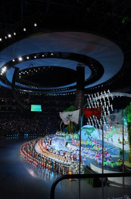 ◇지난달 30일 저녁 중국 상하이 엑스포문화센터에서 이명박 대통령과 후진타오 중국 국가주석, 김영남 북한 최고인민회의 상임위원장, 사르코지 프랑스 대통령 등 전 세계 20여개국 정상들이 참석한 가운데 화려한 개막식이 열리고 있다.