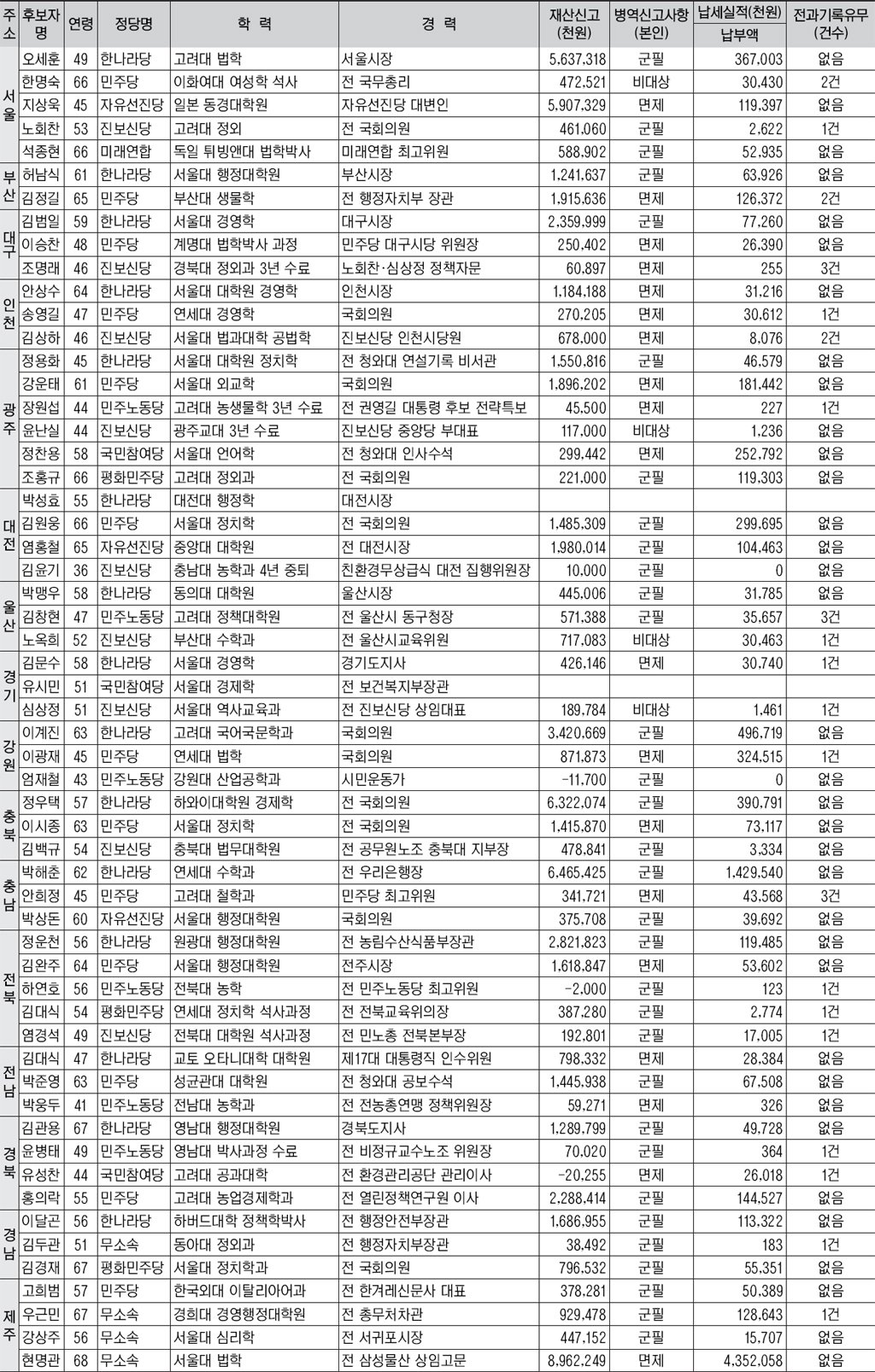 ▶기초단체장 명단은 이름·나이·정당·경력 순입니다.