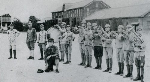 | ◇1944년 대구농림고등학교 관악부원들이 교정에서 연습을 하고 있는 모습. 대구자연과학고 총동창회 제공 |
