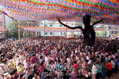 이날 오전 10시 조계종의 중심인 서울 종로구 견지동 조계사에서는 조계종 종정(최고 어른) 법전 스님과 총무원장 자승 스님 등 사부대중 1만여명이 참석한 가운데 법요식이 열렸다.