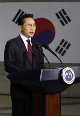 | ◇ 이명박 대통령이 북한의 공격으로 드러난 천안함 침몰 사태와 관련, 24일 오전 전쟁기념관에서 대국민 담화를 갖고 국가원수이자 국군통수권자로서의 공식 입장과 대응방안을 발표하고 있다. <연합> |