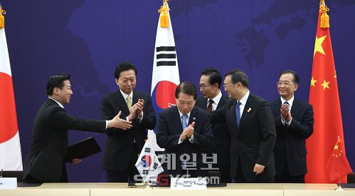 중국이 28일 한중 정상회담과 29, 30일 3국 정상회의에서 조금씩 ‘진전된’ 행보를 보인 데는 한·일 정상이 긴밀한 공조로 설득과 우회적 압박을 병행한 데 따른 영향이 작지 않은 것으로 알려졌다. 이명박 대통령은 이날 회의에서 한반도 평화를 위한 대북 제재의 필요성을 역설하며 ‘전쟁론’을 언급하기도 했다. 하토야마 유키오(鳩山由紀夫) 일본 총리는 자국이 (천안함과) 같은 방식의 공격을 받았다면 자위를 위한 행동을 하지 않을 수 없었을 것이라는 취지로 말하며 이 대통령을 거든 것으로 알려졌다.