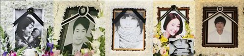 | 故 이은주, 故 안재환, 故 최진실, 故 장자연, 故 최진영. (왼쪽부터) |