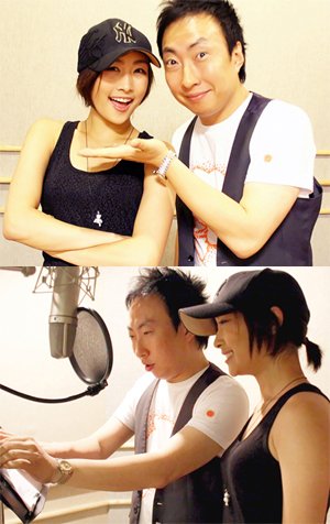 개그맨 박명수와 걸그룹 '카라'의 니콜이 듀엣곡을 녹음한 현장 사진을 공개했다. 박명수와 니콜은 지난 15일 서울 강남의 한 녹음 스튜디오에서 듀엣곡 '고래'의 녹음을 마쳤다.