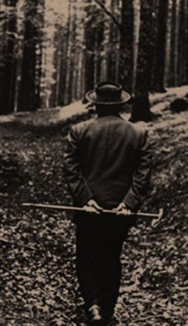 | ◇독일의 신존주의 대철학자인 하이데거가 집 뒤의 오솔길을 생각에 잠긴 듯 거닐고 있다. 생각의 나무 제공 |